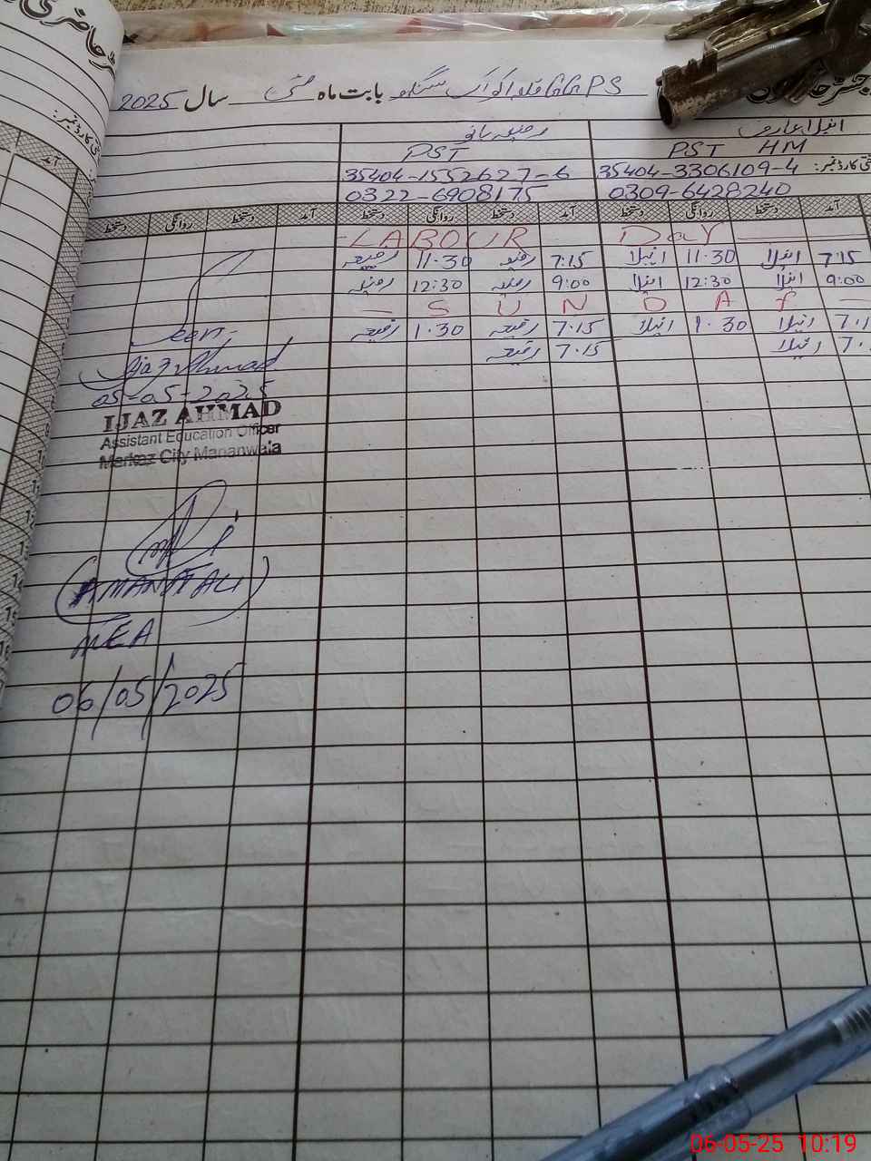 | Name: An**** Ar**** Designation: (School Headmaster's/Headmistress's) PST Phone/Cell Number: 03**** |