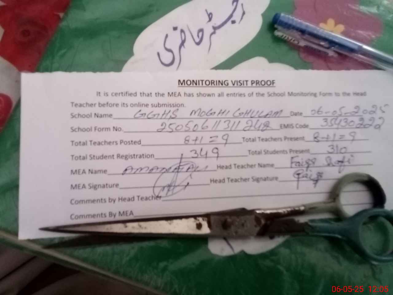 | EMIS Code: 35430222 | Name of School: GGHS MOGI GHULAM P/O MANAN WALA | |||