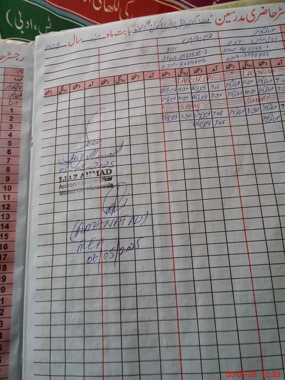 | Name: SA**** KA**** Designation: (School Headmaster's/Headmistress's) PST Phone/Cell Number: 03**** |