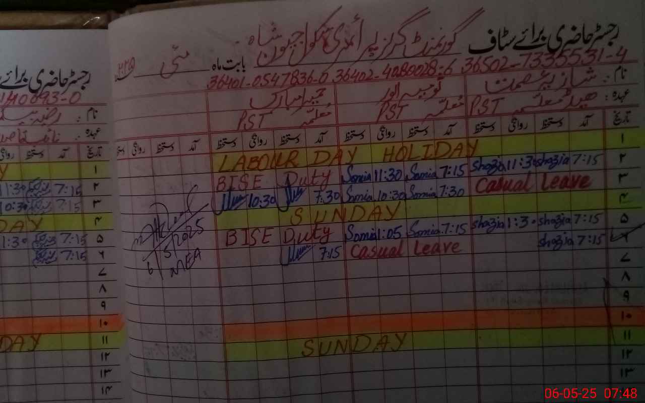 | Name: SH**** AS**** Designation: (School Headmaster's/Headmistress's) PST Phone/Cell Number: 03**** |