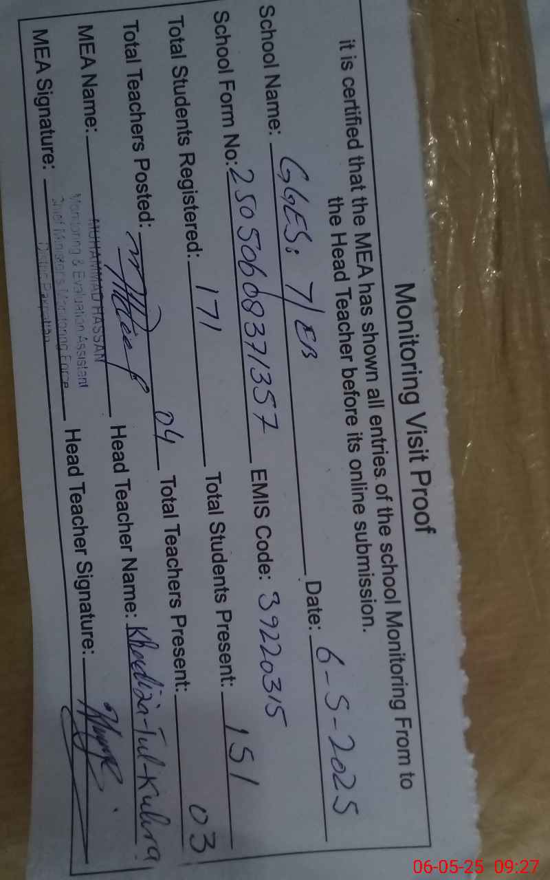 | EMIS Code: 39220315 | Name of School: GGES 7 EB POST OFFICE 7 EB | |||