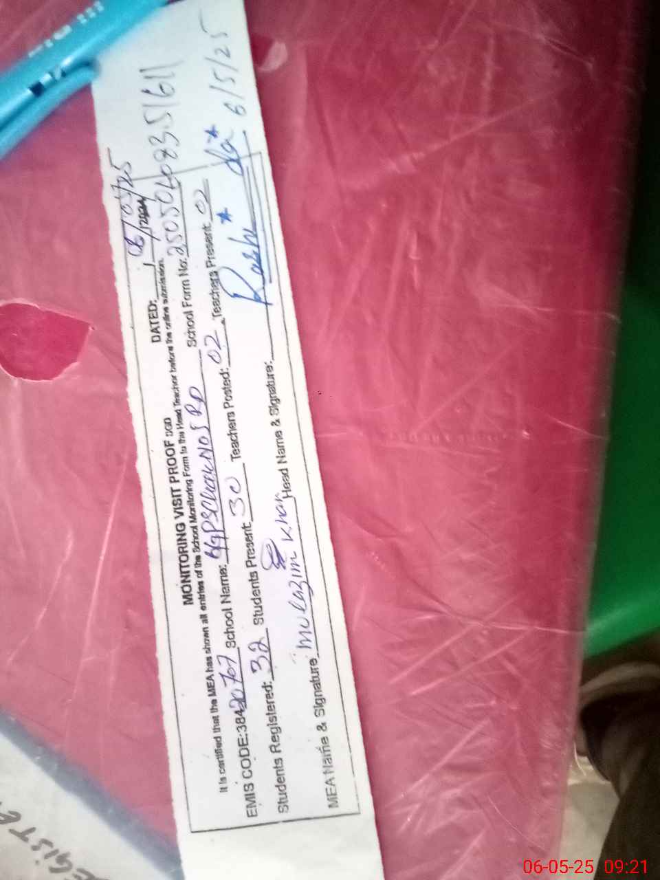 | Attendance Register | Head Teacher | MEA with School | Visit Proof |