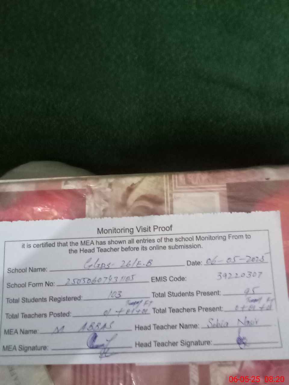 | EMIS Code: 39220307 | Name of School: GGPS 26 EB | |||