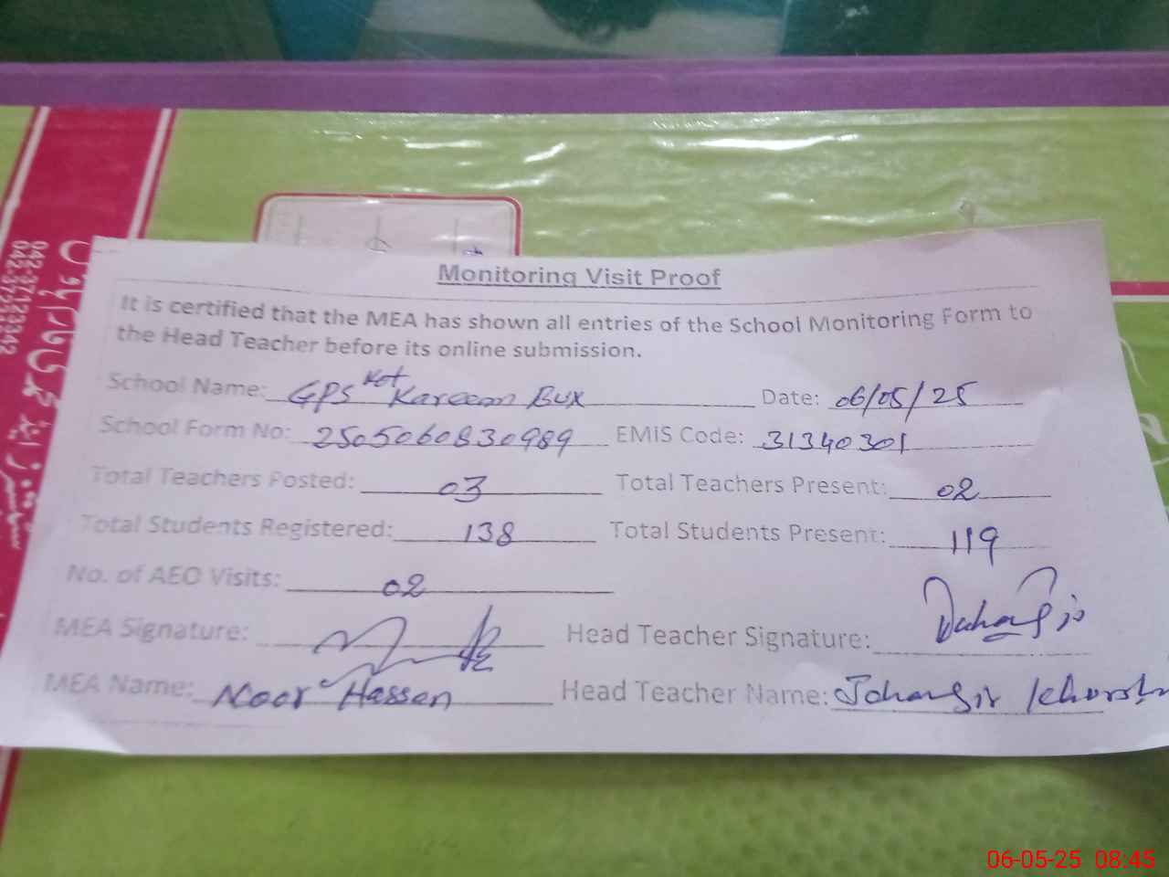 | EMIS Code: 31340301 | Name of School: GPS KOT KARIM BAKHSH | |||