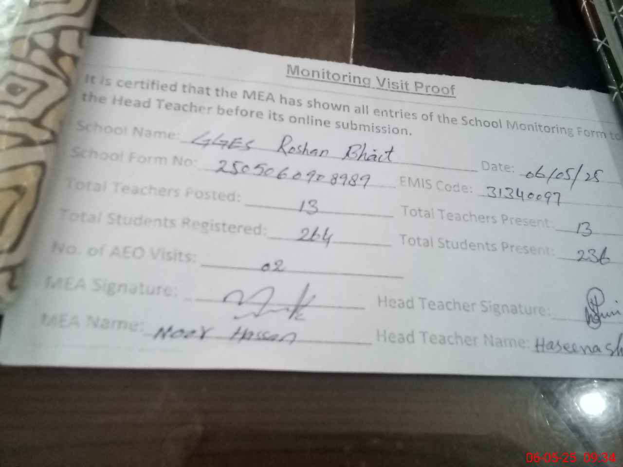 | EMIS Code: 31340097 | Name of School: GGES ROSHAN BHAIT | |||