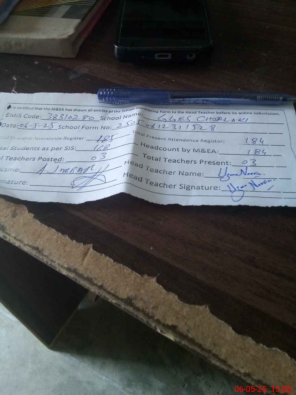 | EMIS Code: 38310280 | Name of School: GGES CHORLAKI BANGI KHEL | |||