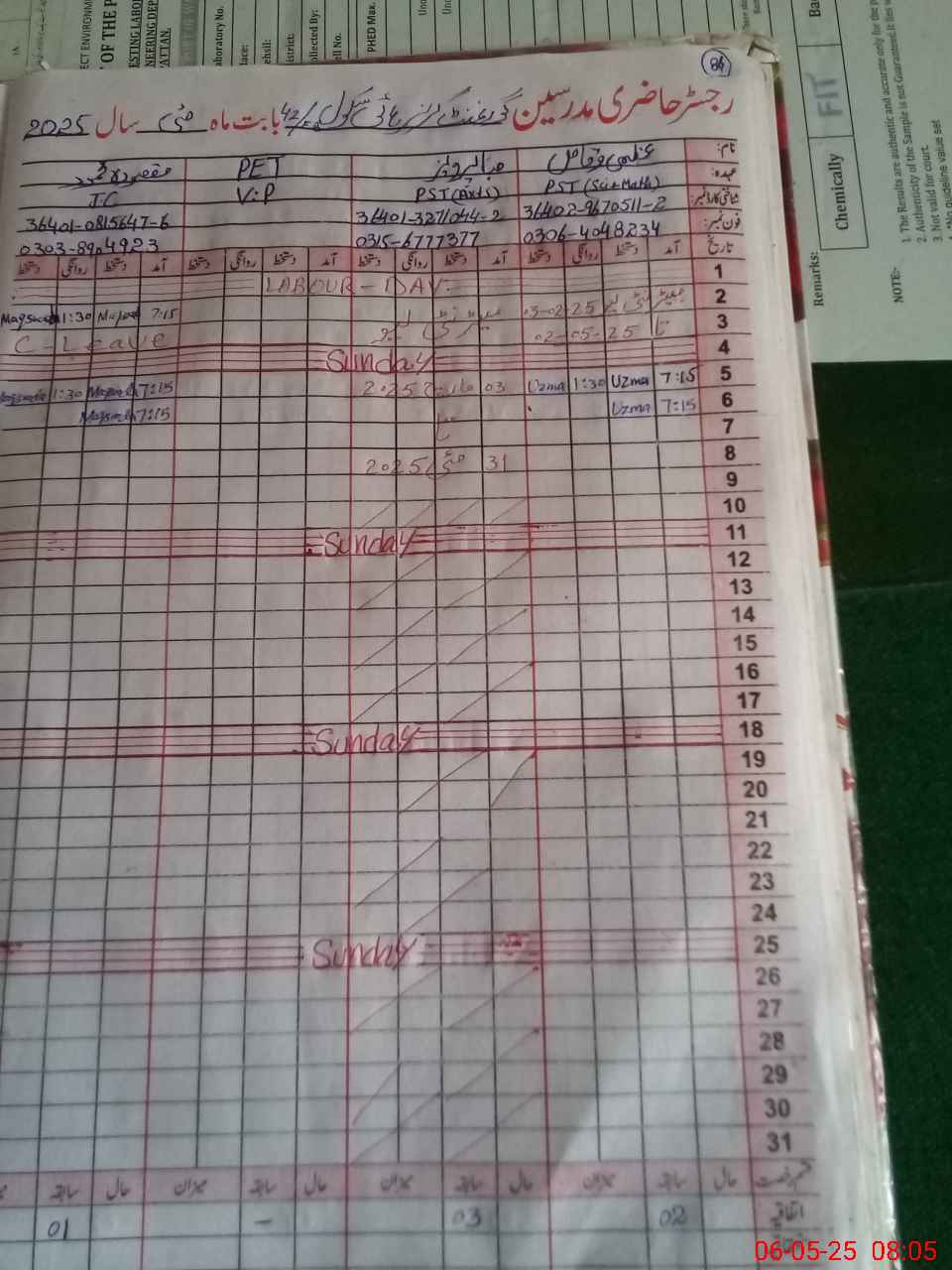 | Name: BU**** HA**** Designation: (School Headmaster's/Headmistress's) SST (GENERAL) Phone/Cell Number: 03**** |