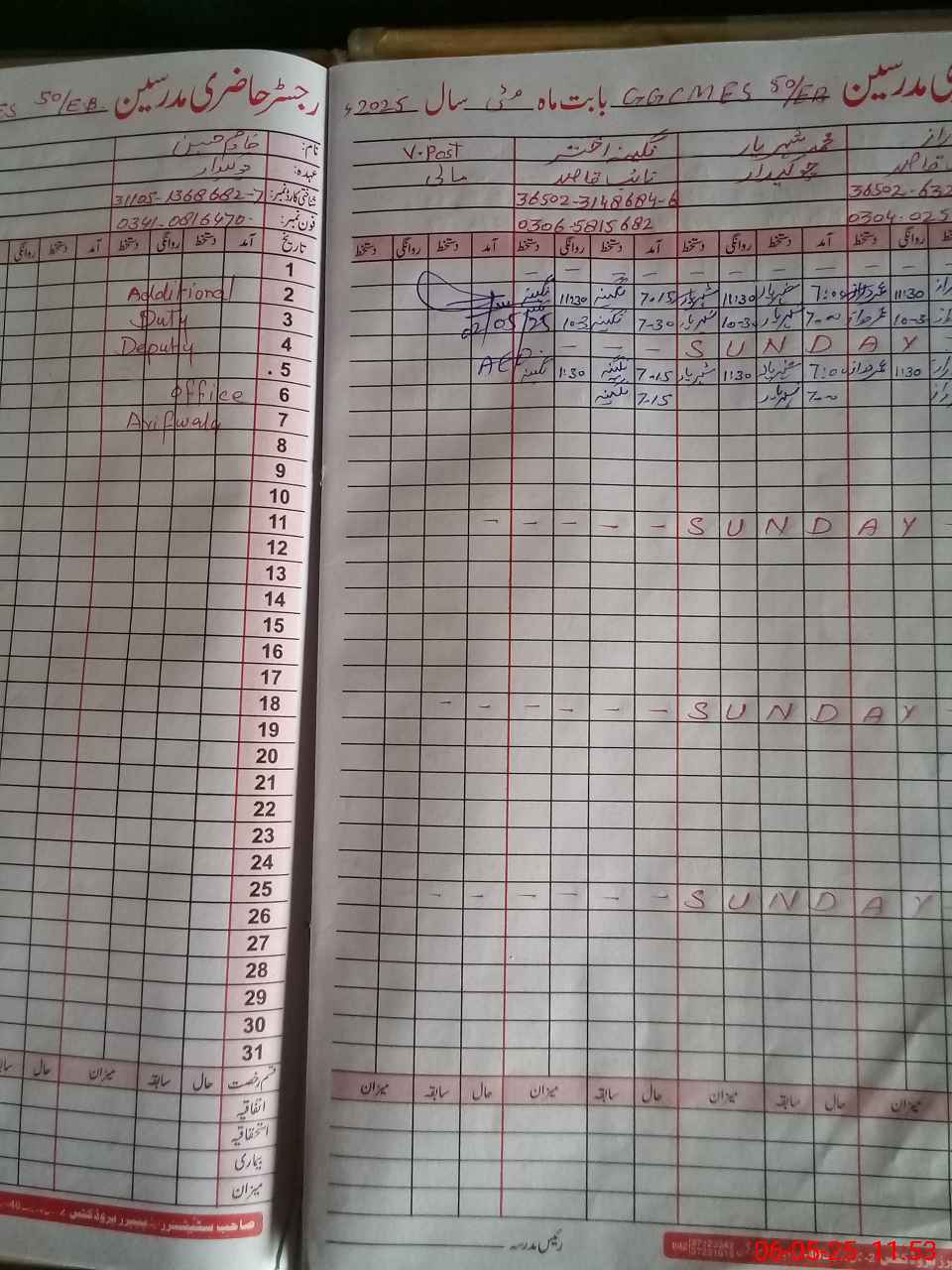 | Name: SA**** AS**** Designation: (School Headmaster's/Headmistress's) SST (GENERAL) Phone/Cell Number: 03**** |