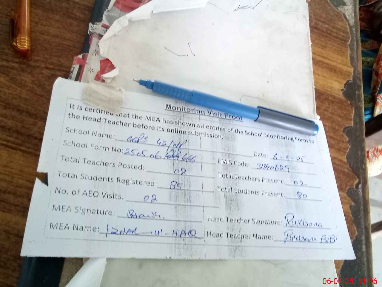 | EMIS Code: 31340629 | Name of School: GGPS CHAK 42/NP | |||