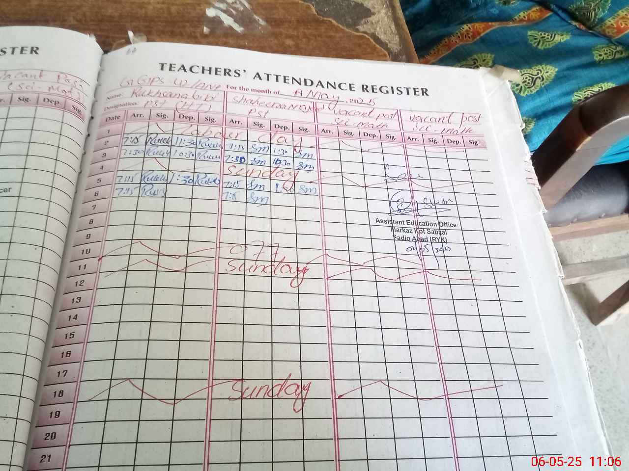 | District: RAHIMYAR KHAN | Tehsil: SADIQABAD | Markaz: KOT SABZAL - FEMALE | Level: Primary | |