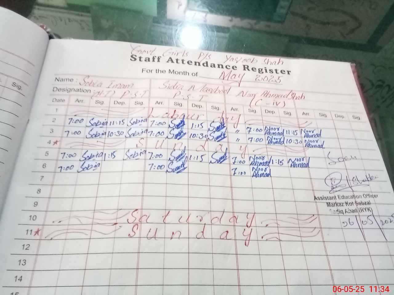 | Monitoring Date: 06-05-2025 | Start Time: 06-05-2025 11:21 AM | End Time: 06-05-2025 11:42 AM | Name of MEA: Mu**** Iz**** UlHa**** | |