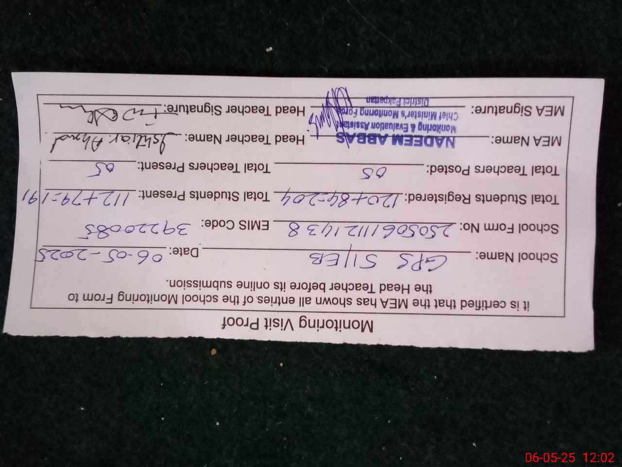 | Certified that this School was Inspected by the Undersigned MEA/DMO Today and the Information Stated Above is as Per Record. | |||||