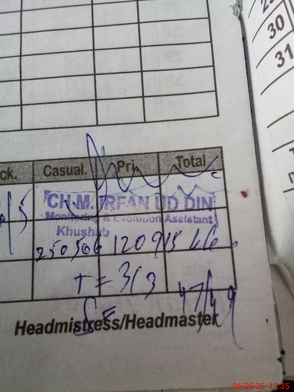 | Name: Um**** Az**** Designation: (School Headmaster's/Headmistress's) PST Phone/Cell Number: 03**** |