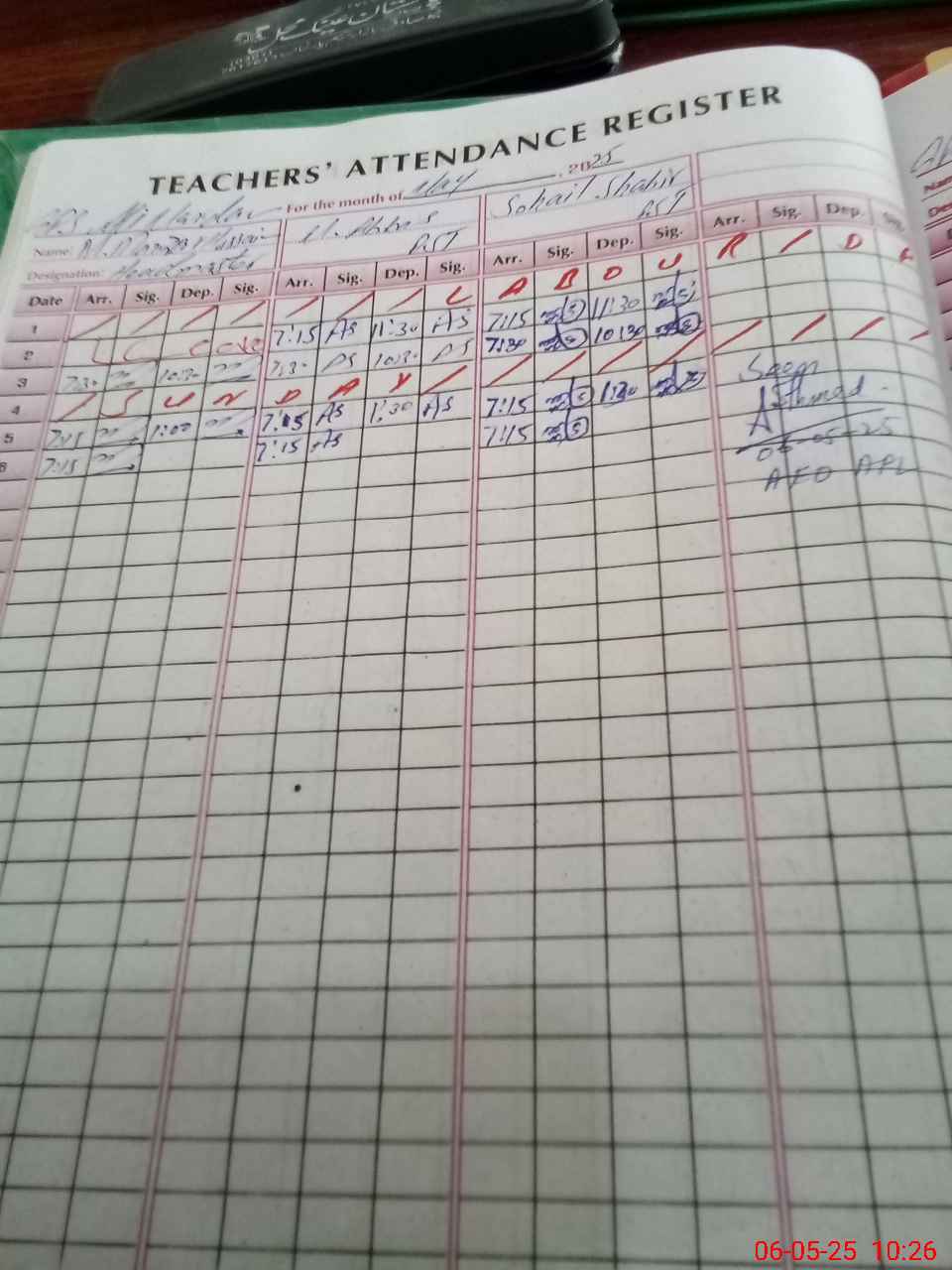 | CNIC | Full Name | Designation | R/C | Absence during last cal. month |