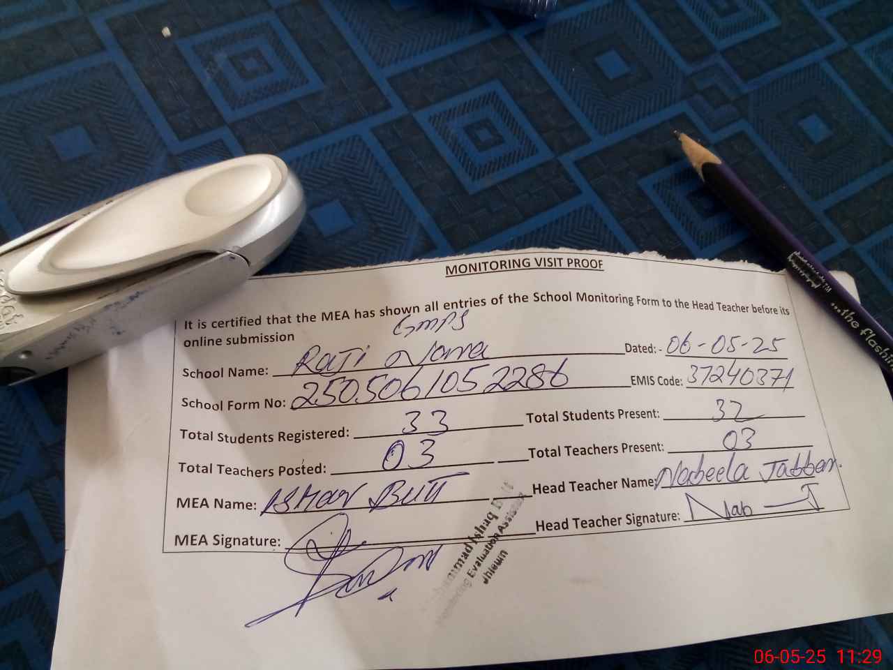| Certified that this School was Inspected by the Undersigned MEA/DMO Today and the Information Stated Above is as Per Record. | |||||