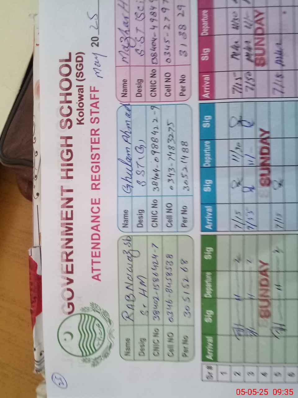 | EMIS Code: 38420134 | Name of School: GHS KOLOWAL NANGIANA | |||