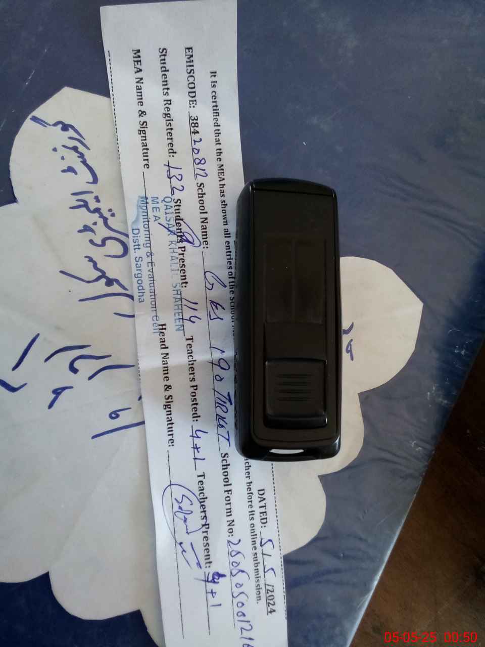| Certified that this School was Inspected by the Undersigned MEA/DMO Today and the Information Stated Above is as Per Record. | |||||