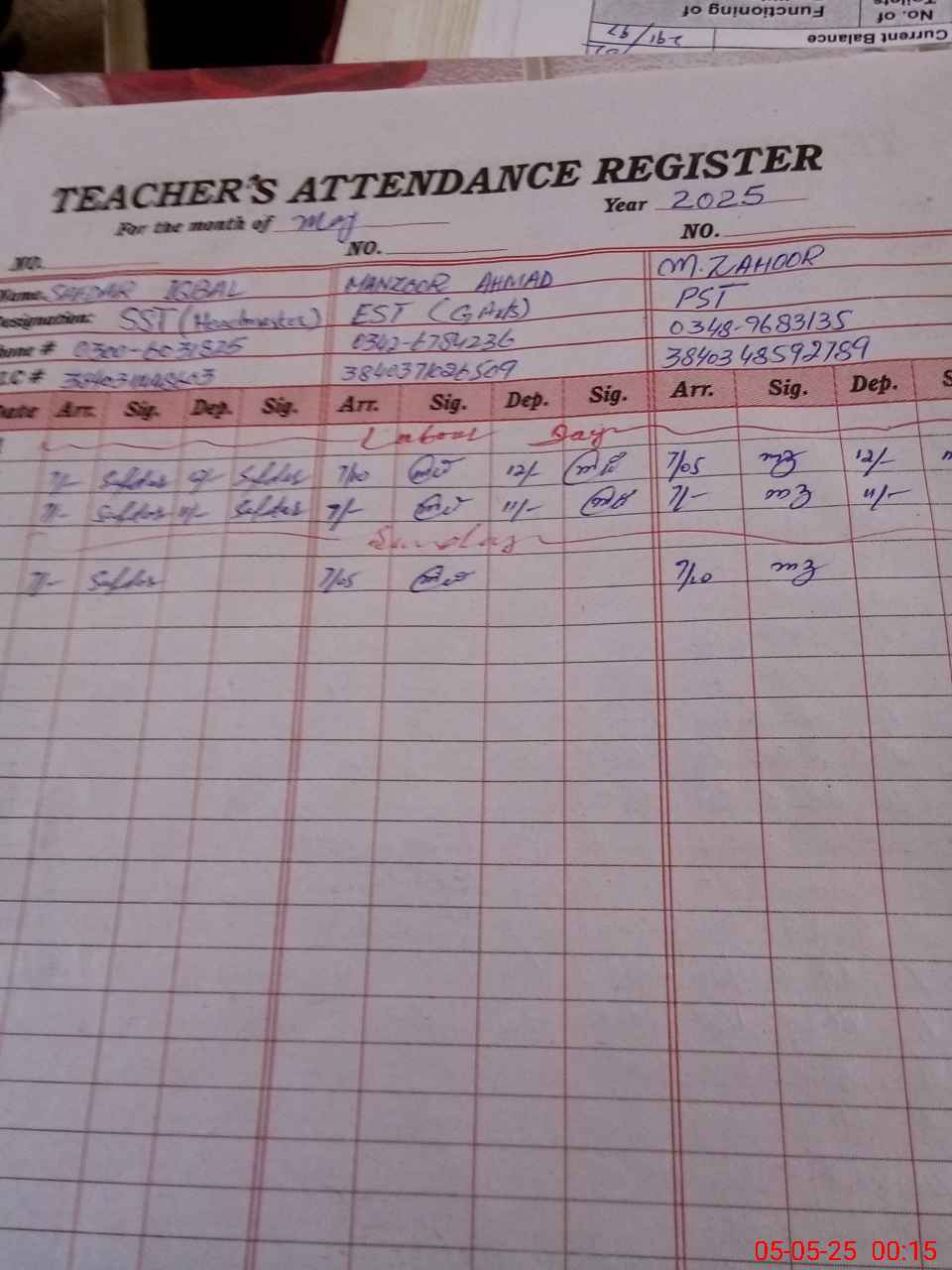| Name: SA**** IQ**** Designation: (School Headmaster's/Headmistress's) SST Headmaster Phone/Cell Number: 03**** |