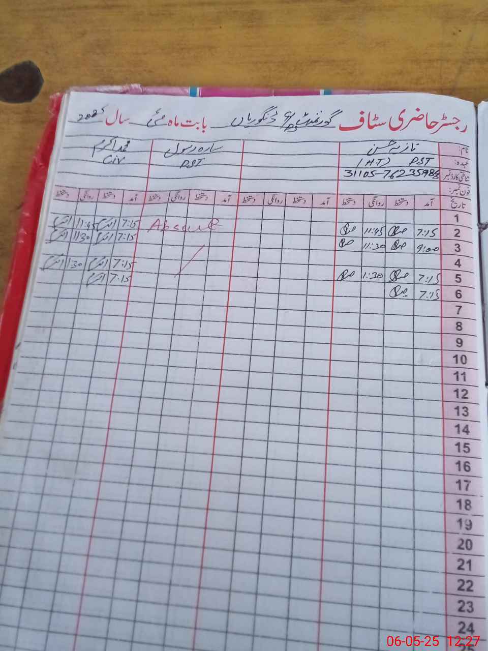 | 00**** | Mu**** Ak**** | CIV | 0 | 0 | 0 | 0 | 0 | 0 | 0 | 0 | 0 | Absent (Un-Authorized) | |