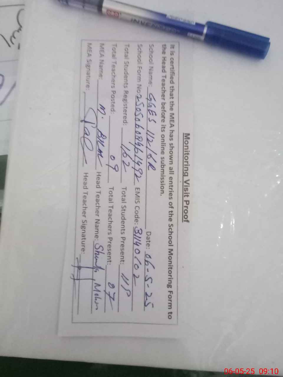 | Name: Sh**** Mo**** Designation: (School Headmaster's/Headmistress's) SST Phone/Cell Number: 03**** |