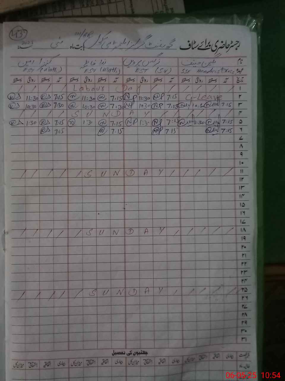 | CNIC | Full Name | Designation | R/C | Absence During Last Calender Month |