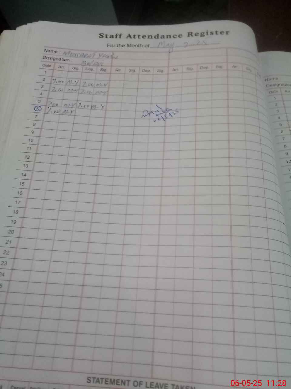 | Monitoring Date: 06-05-2025 | Start Time: 06-05-2025 10:50 AM | End Time: 06-05-2025 11:45 AM | Name of MEA: Mu**** Ay**** | |