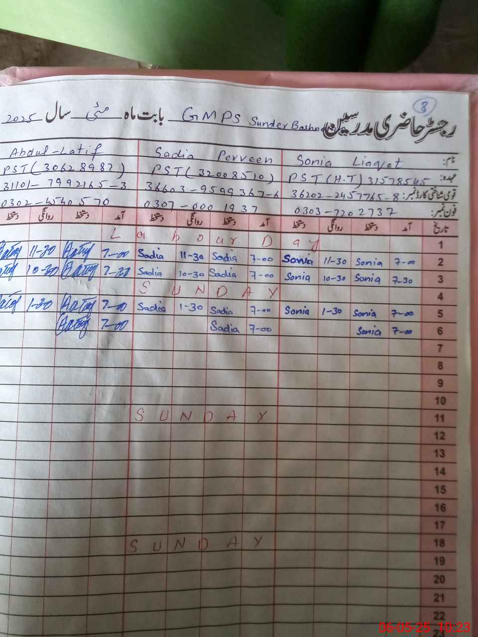 | Name: So**** Li**** Designation: (School Headmaster's/Headmistress's) PST Phone/Cell Number: 03**** |