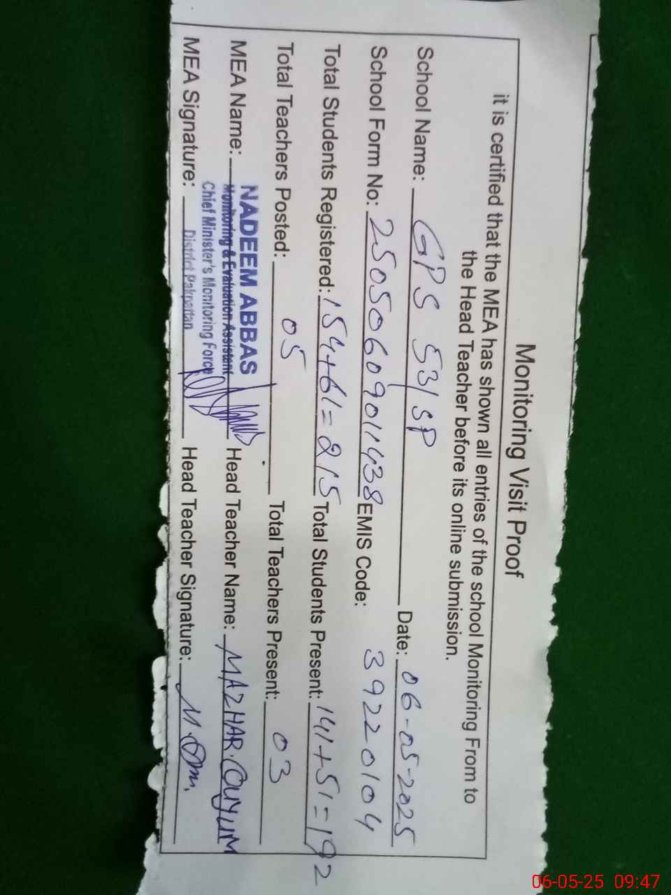 | EMIS Code: 39220104 | Name of School: GPS 53 SP | |||