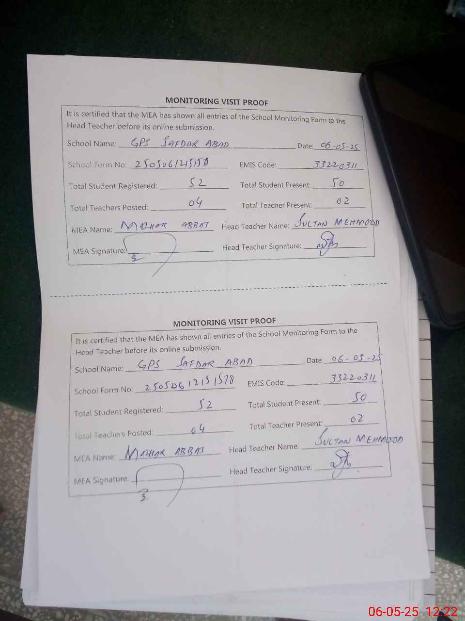 | EMIS Code: 33220311 | Name of School: GPS SAFDAR ABAD | |||