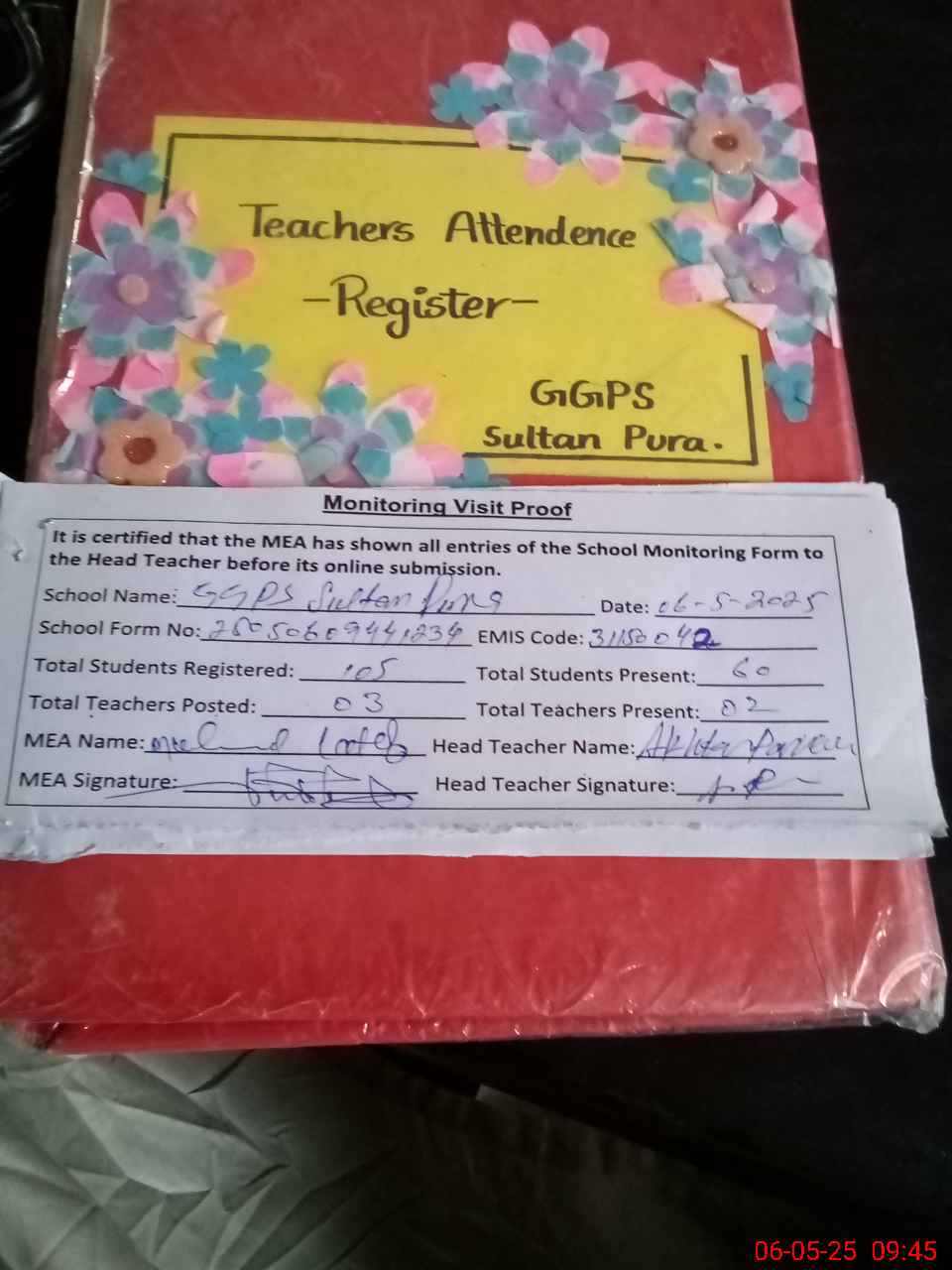 | EMIS Code: 31150042 | Name of School: GGPS SULTAN PURA | |||
