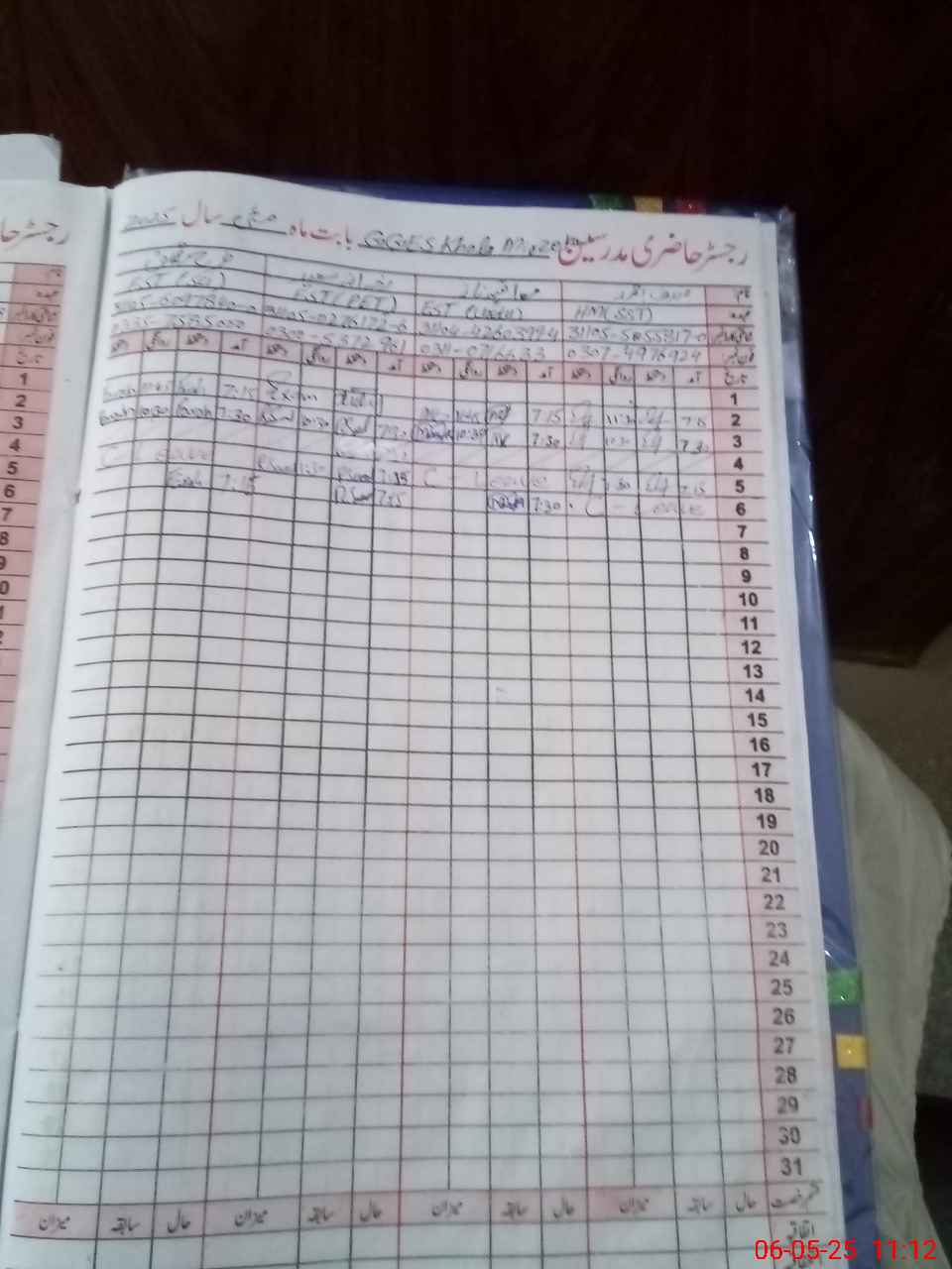 | CNIC | Full Name | Designation | R/C | Absence During Last Calender Month |