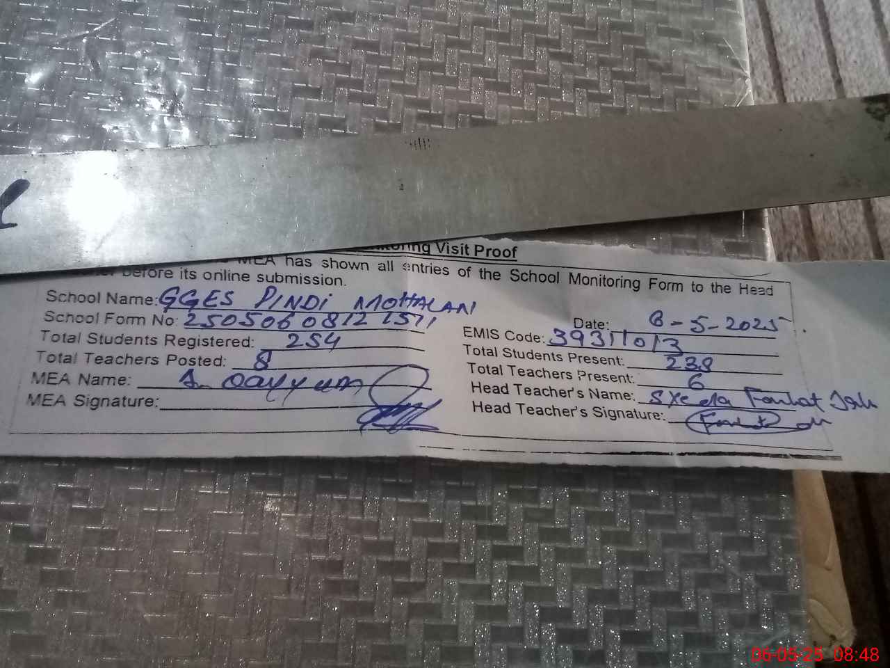 | EMIS Code: 39311013 | Name of School: GGES CHAK PINDI MOHLAN | |||