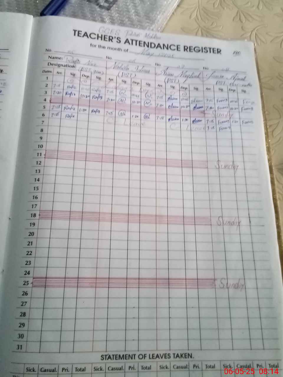| Name: SY**** FA**** JA**** Designation: (School Headmaster's/Headmistress's) SST GENERAL Phone/Cell Number: 03**** |