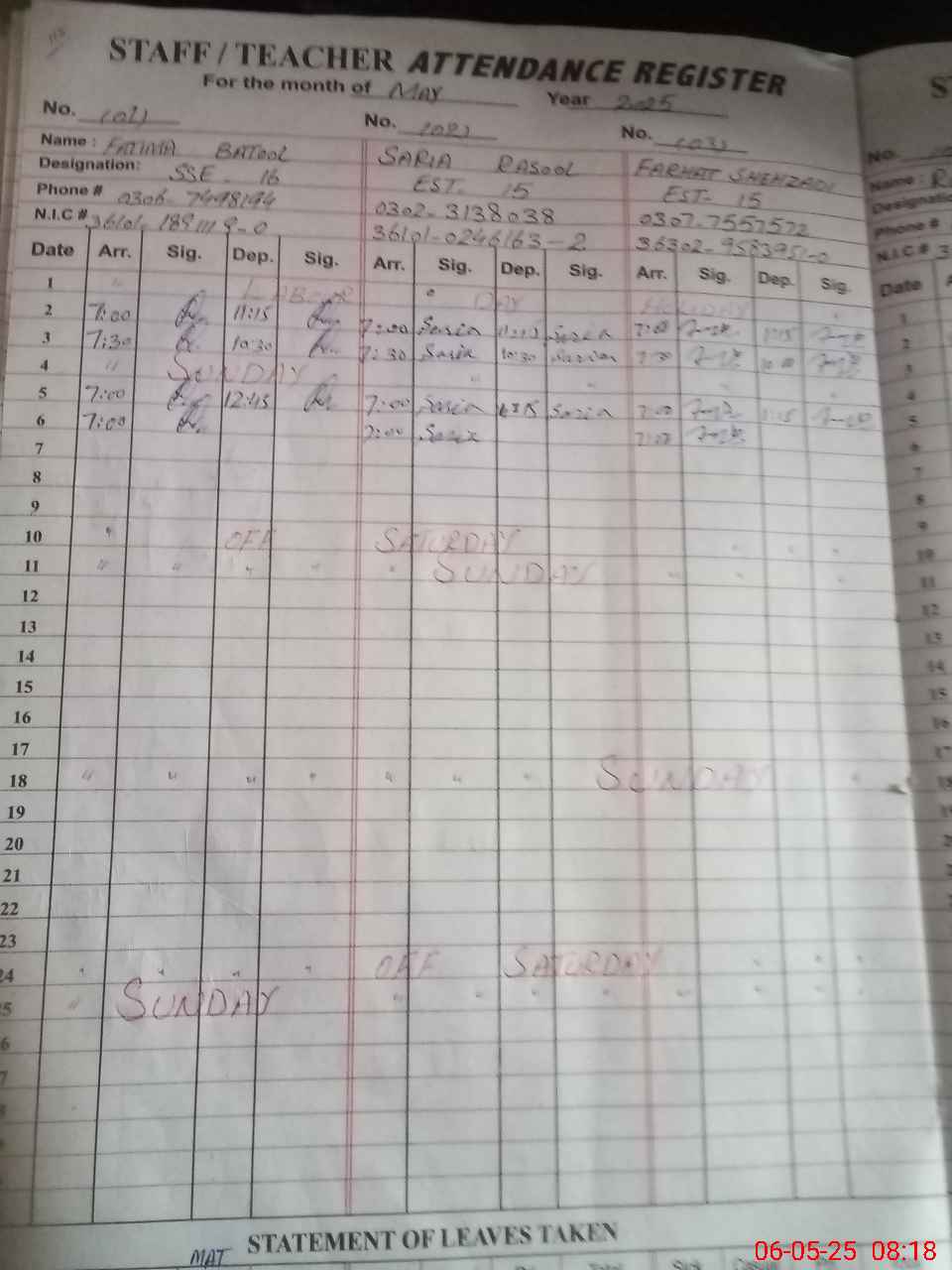 | 36**** | Sa**** Sh**** | 1 | 1 | 0 | 0 | 0 | 0 | 0 | 0 | 0 | 0 | 0 | Absent (Un-Authorized) |