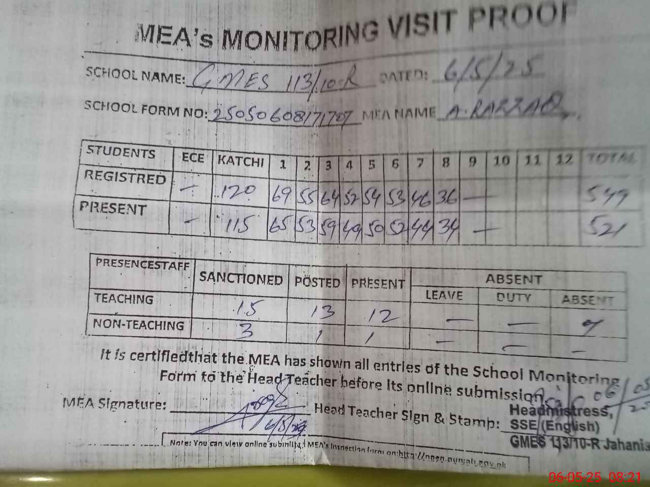 | EMIS Code: 36440491 | Name of School: GMES 113/10-R, JAHANIAN | |||
