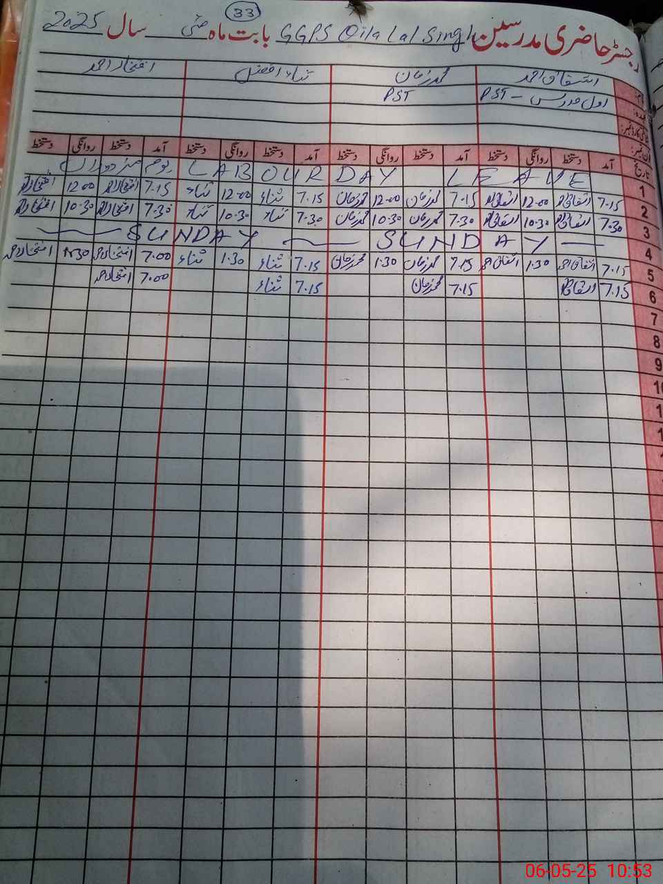 | Name: AS**** AH**** Designation: (School Headmaster's/Headmistress's) PST Phone/Cell Number: 03**** |