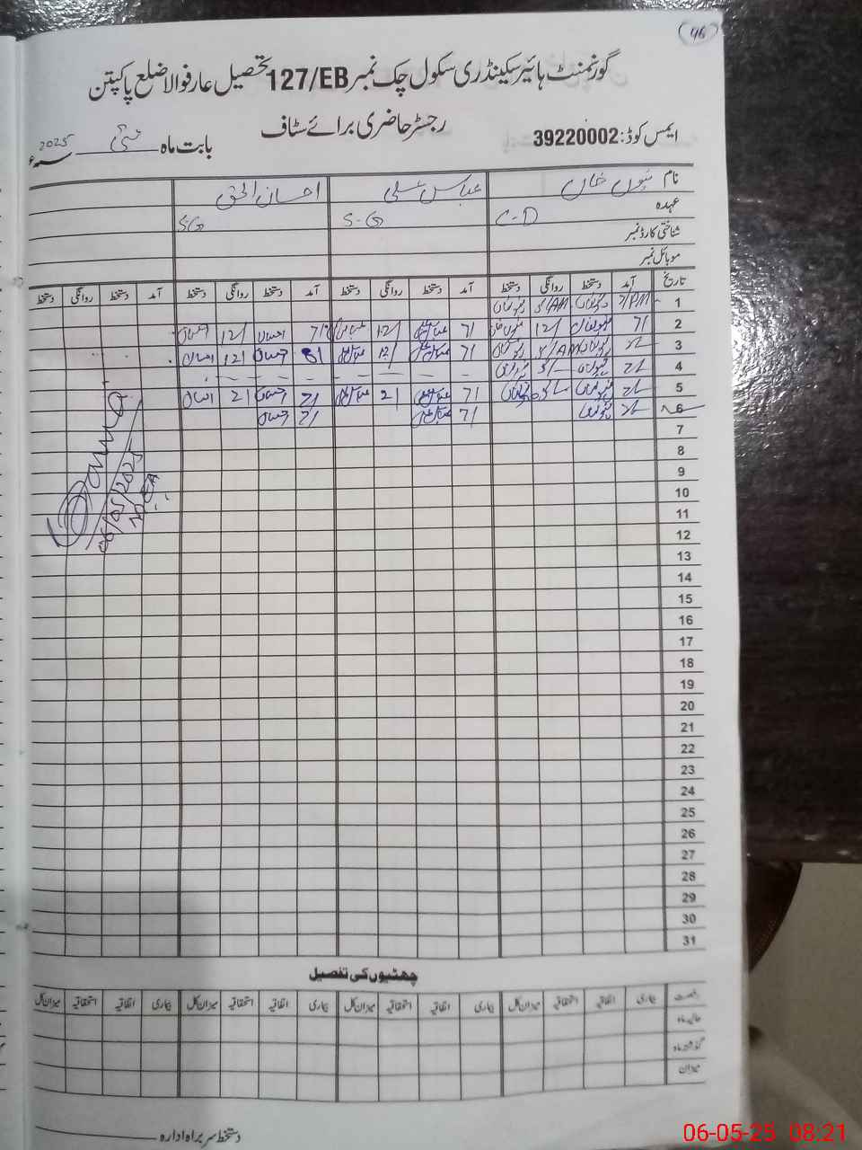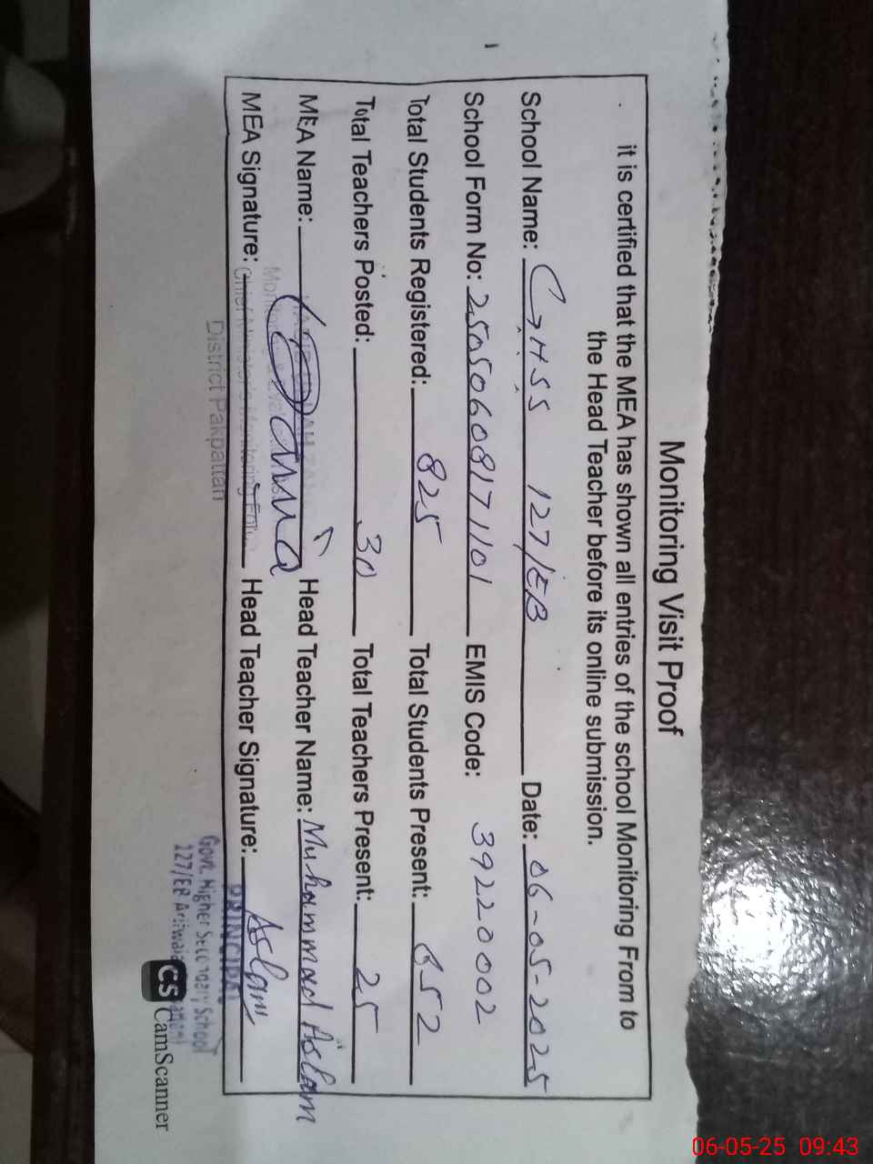 | EMIS Code: 39220002 | Name of School: GHSS 127/EB ARIFWALA | |||