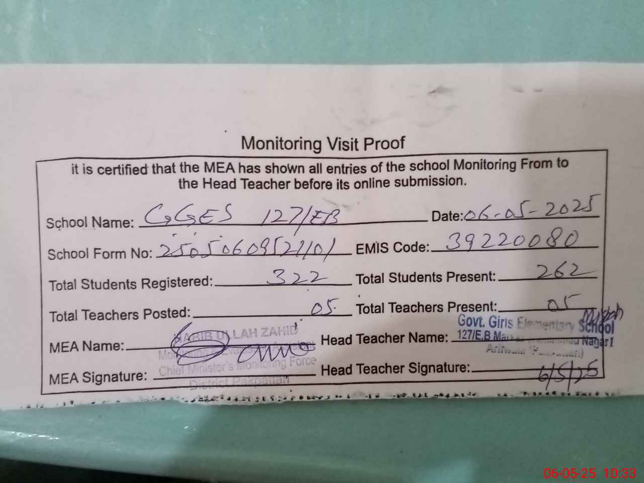 | Monitoring Date: 06-05-2025 | Start Time: 06-05-2025 09:47 AM | End Time: 06-05-2025 10:34 AM | Name of MEA: Ha**** Ul**** Ur**** Ba**** Al**** | |