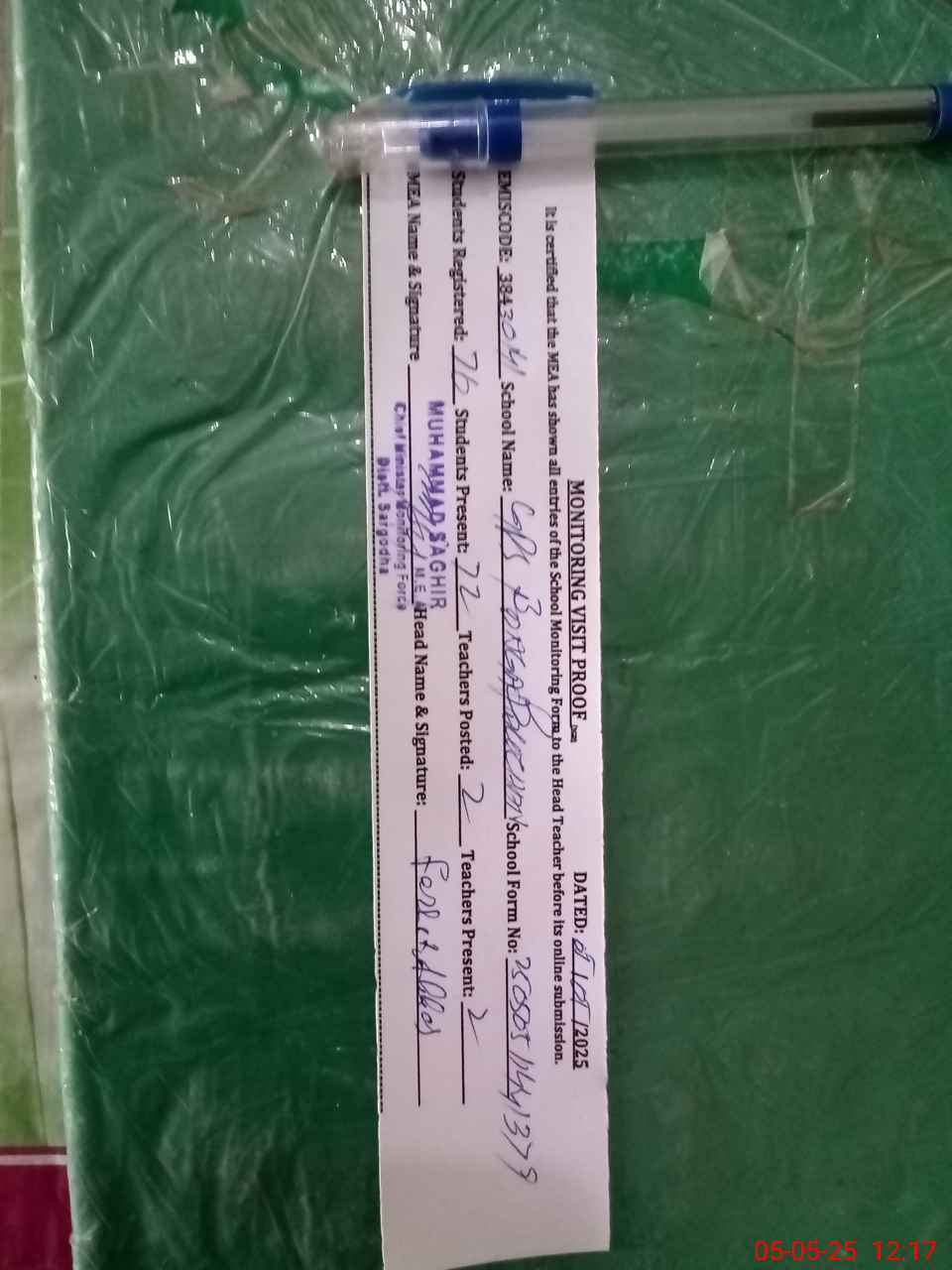 | Attendance Register | Head Teacher | MEA with School | Visit Proof |