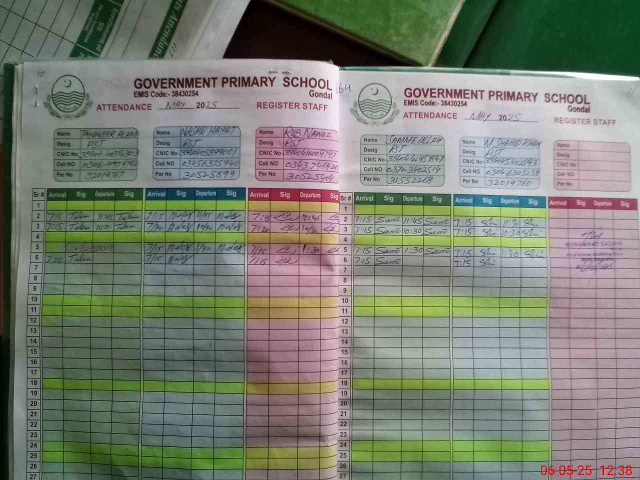 | CNIC | Full Name | Designation | R/C | Absence during last cal. month |