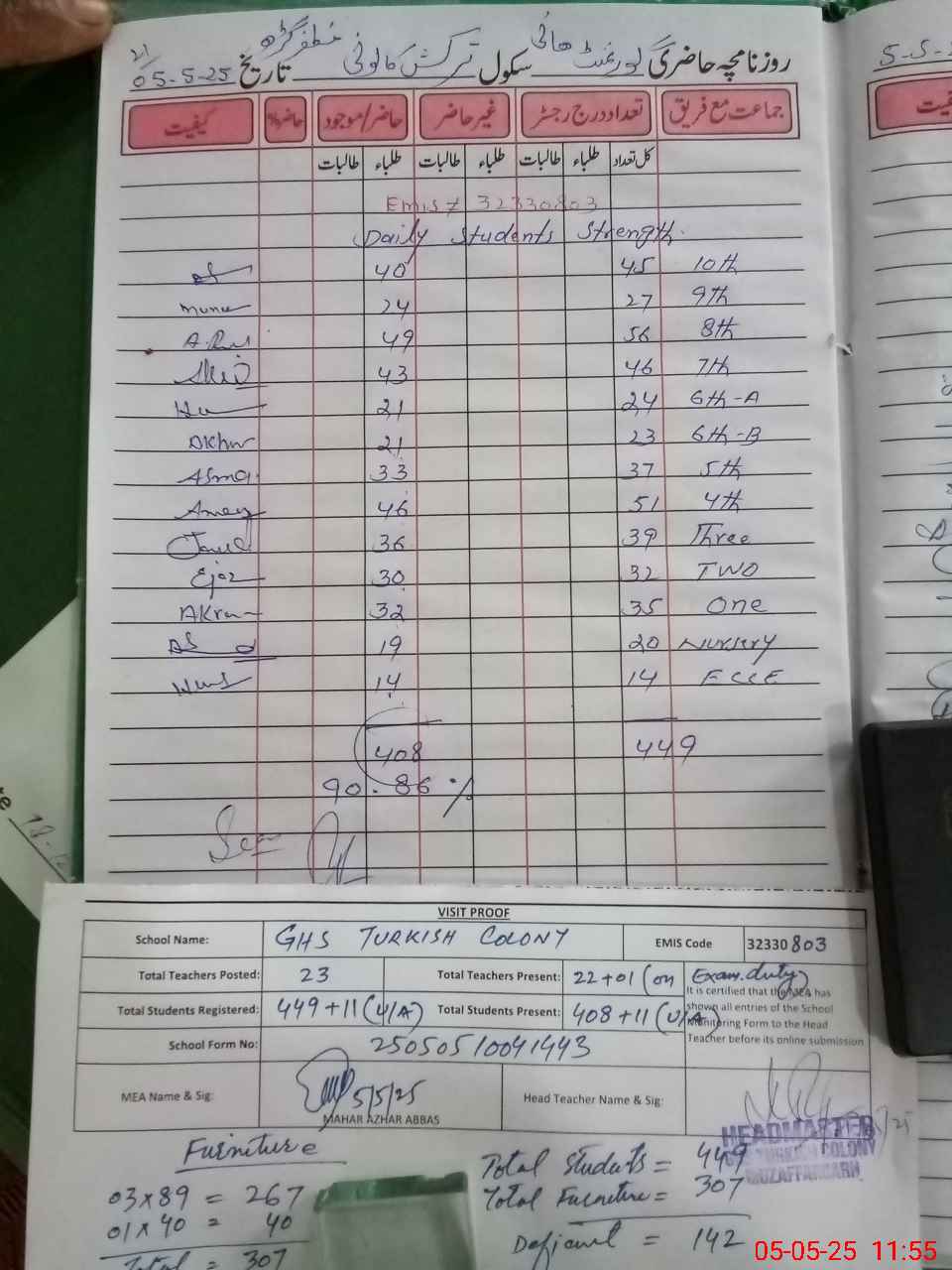 | Attendance Register | Head Teacher | MEA with School | Visit Proof |