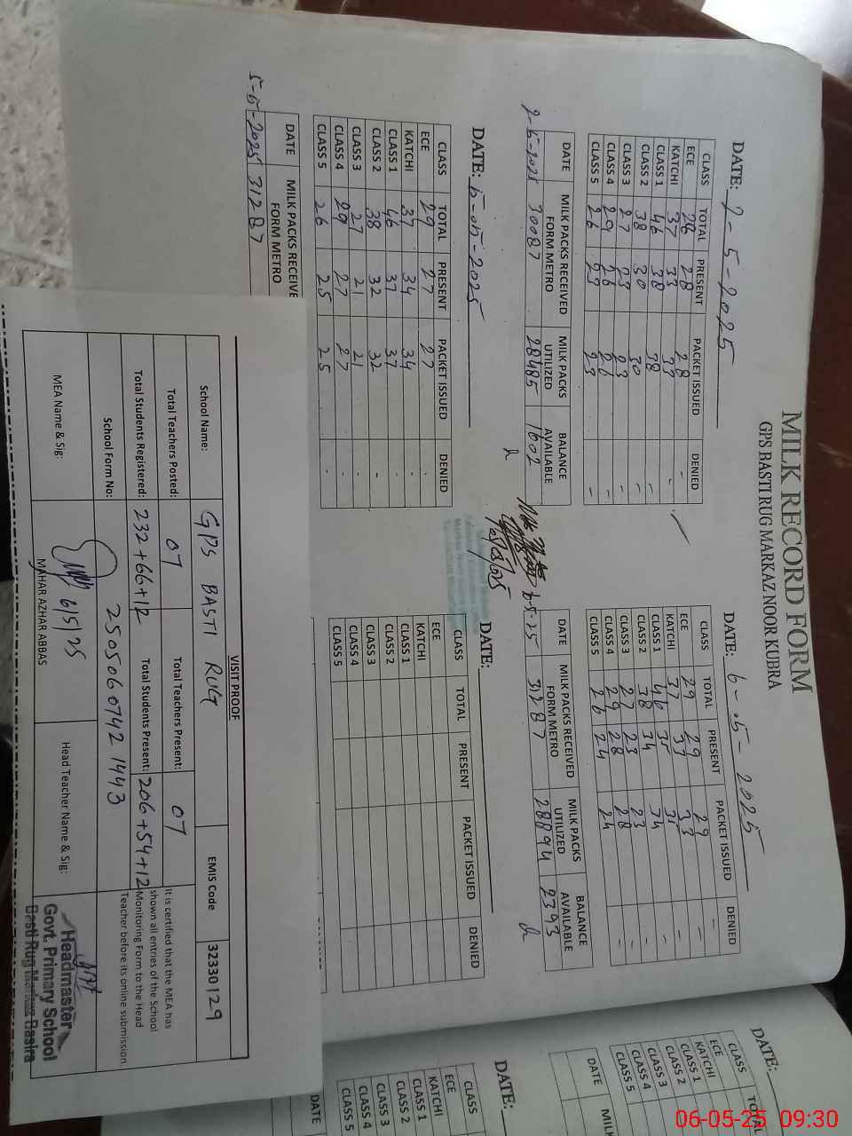 | Attendance Register | Head Teacher | MEA with School | Visit Proof |