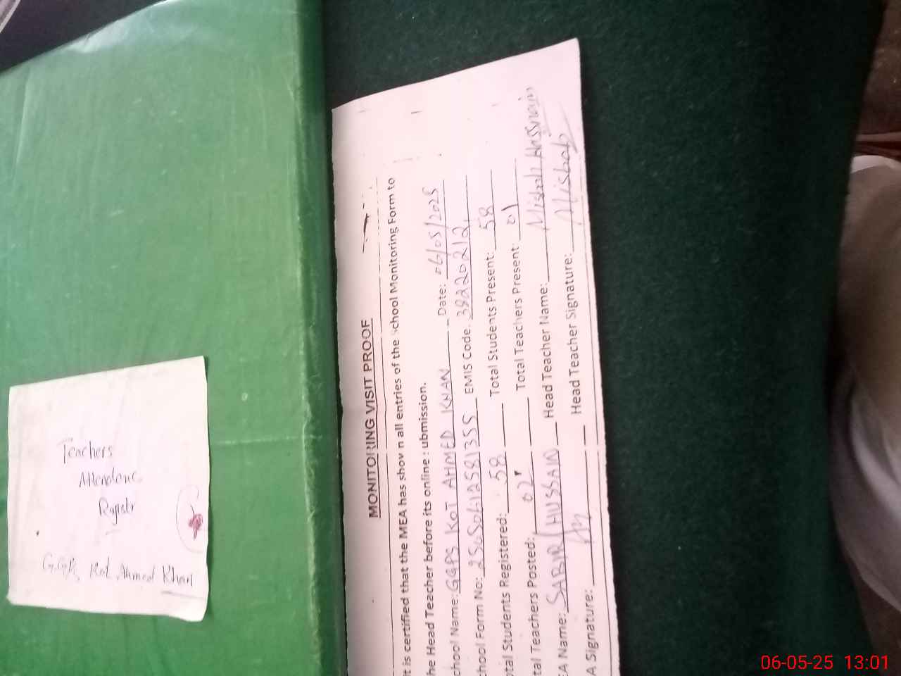 | EMIS Code: 38220212 | Name of School: GGPS KOT AHMAD KHAN | |||