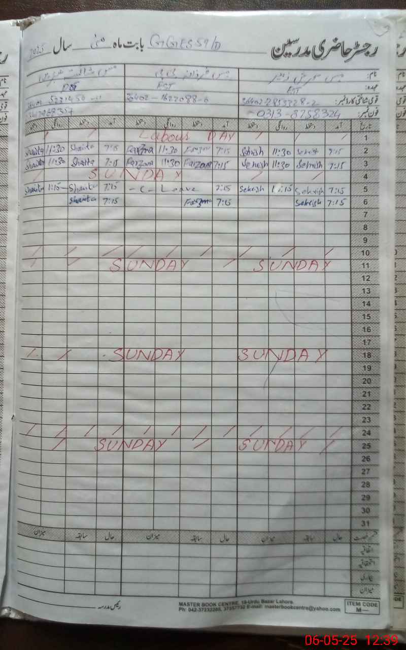 | CNIC | Full Name | Designation | R/C | Absence During Last Calender Month |