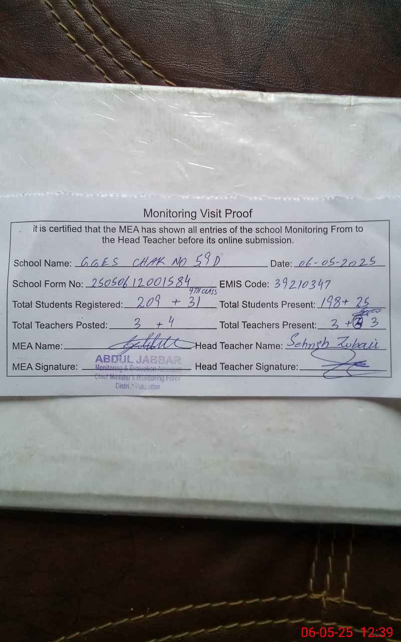 | EMIS Code: 39210347 | Name of School: GGES CHAK NO. 59 D | |||