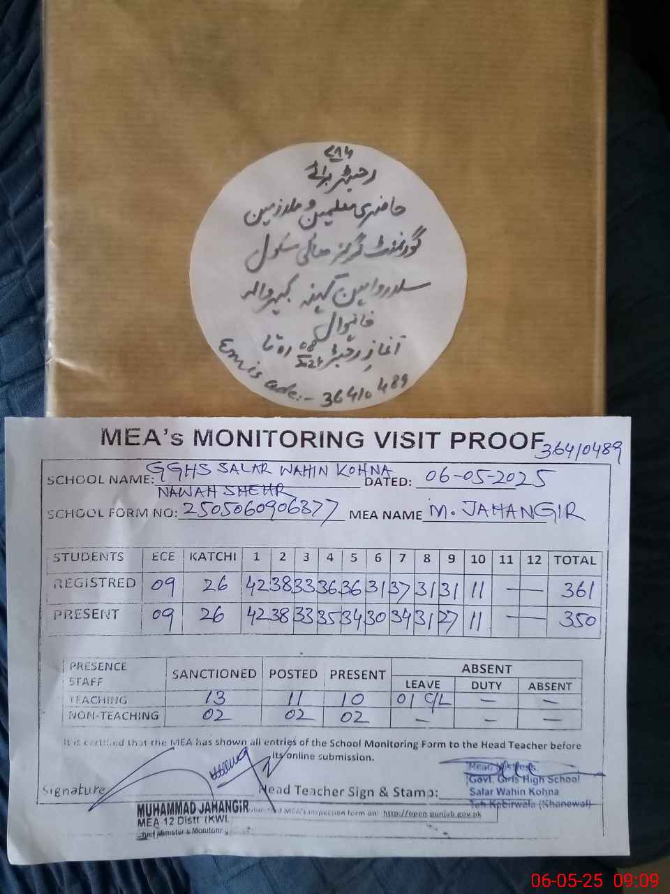 | EMIS Code: 36410489 | Name of School: GGHS SALAR WAHIN KOHNA NAWAN SHEHR | |||