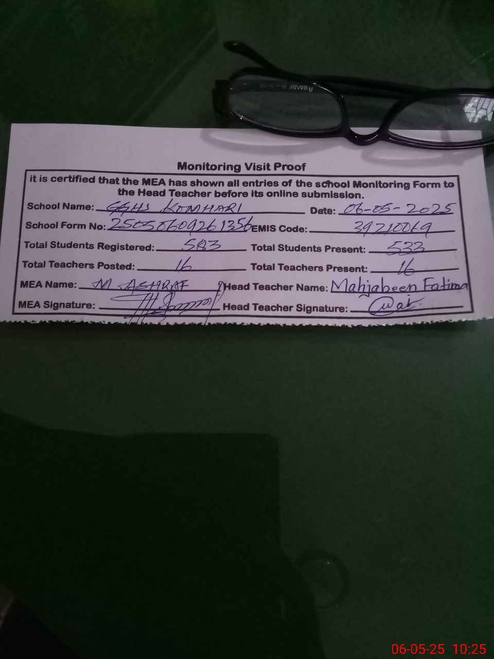 | Certified that this School was Inspected by the Undersigned MEA/DMO Today and the Information Stated Above is as Per Record. | |||||