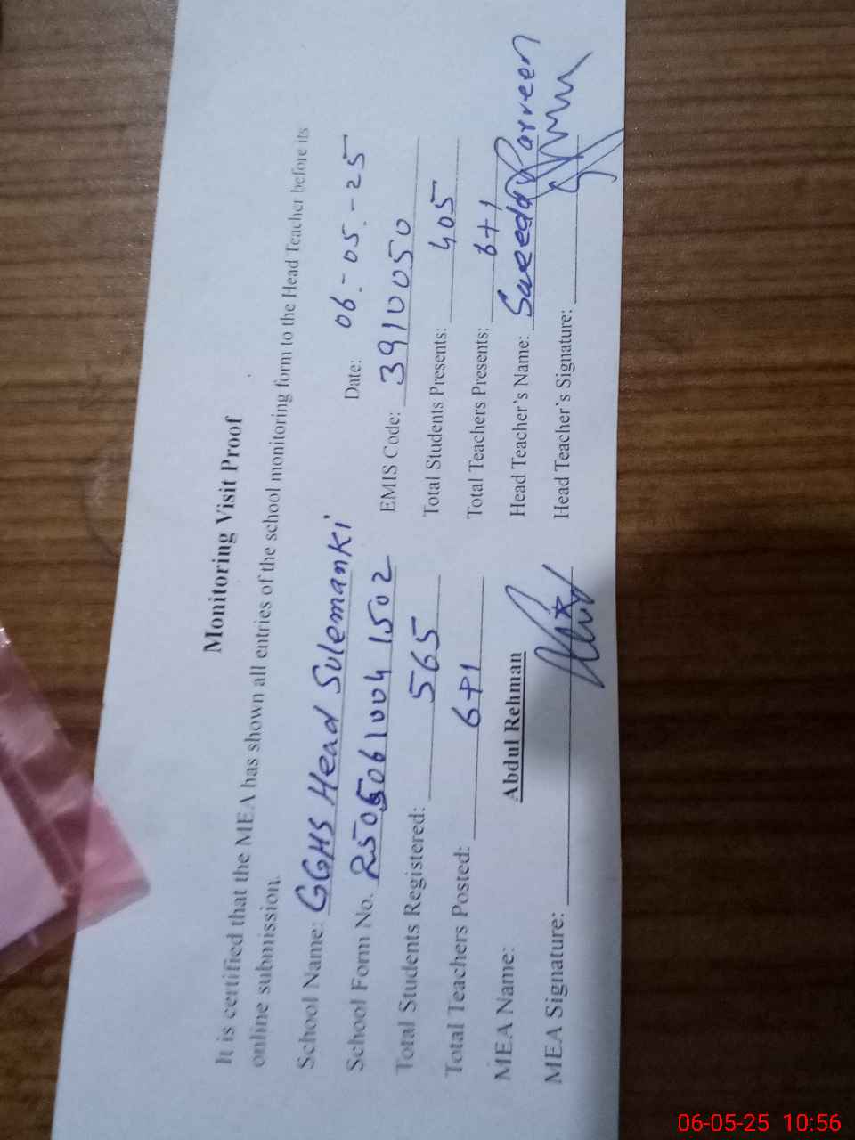 | EMIS Code: 39310050 | Name of School: GGHS HEAD SULEMANKI | |||