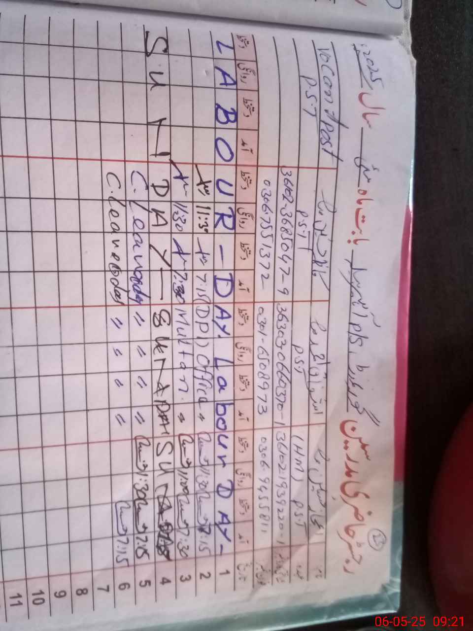 | CNIC | Full Name | Designation | R/C | Absence during last cal. month |