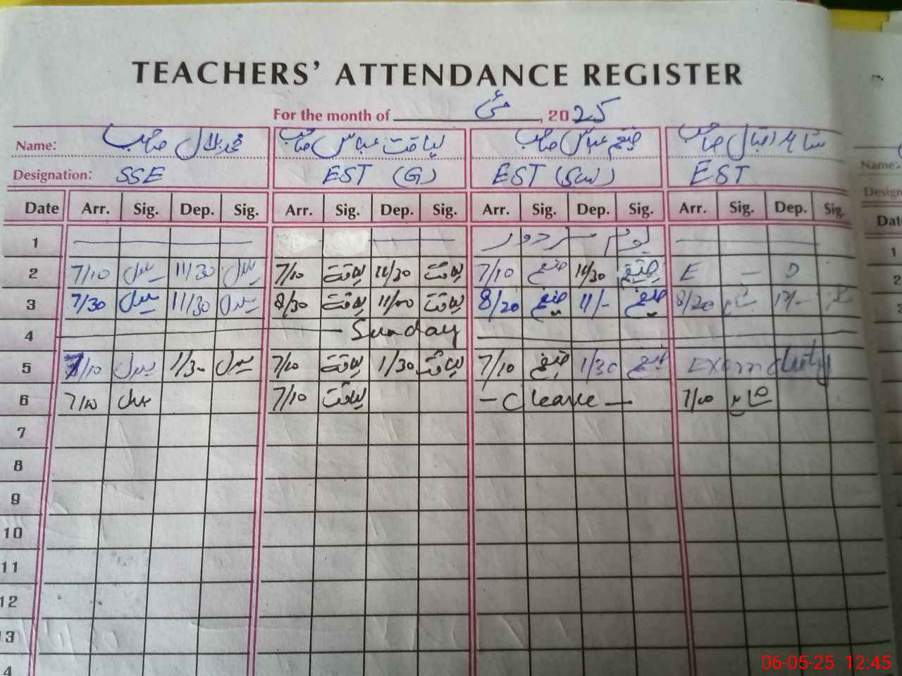 | 36**** | Sh**** Mu**** Sh**** | 3 | 1 | 0 | 0 | 0 | 0 | 0 | 0 | 0 | 0 | 0 | Exam Duty |